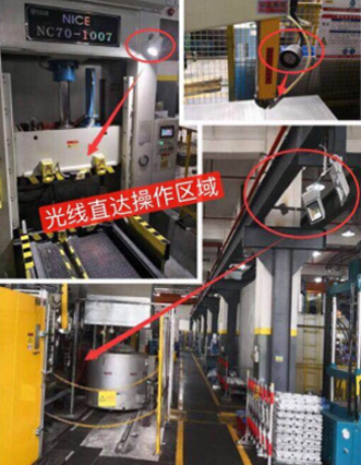 在機械設備操作區域,增加了局部照明設備,增加了員工操作過程中的舒適度,減少了事故發生隱患。