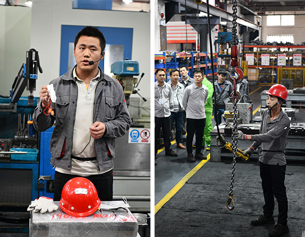 逃生演習(xí)結(jié)束后,全體分為三個(gè)小組進(jìn)行實(shí)操演練。所有項(xiàng)目采用循環(huán)演示方式,保證所有員工都可以觀看到完整的實(shí)操演練。演練項(xiàng)目包括:搬運(yùn)鐵桶的注意事項(xiàng)、防護(hù)用品的標(biāo)準(zhǔn)佩戴方式、翻模的注意事項(xiàng)、叉車和行車的正確使用、磨床區(qū)的安全操作、用電安全、機(jī)器維護(hù)常識(shí)、壓鑄機(jī)的周邊隱患等。實(shí)操演練是對(duì)于理論安全知識(shí)的一種具象再現(xiàn),加強(qiáng)了生產(chǎn)安全的學(xué)習(xí)和記憶。