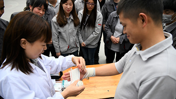為了增強(qiáng)學(xué)習(xí)效果,公司還組織了“安全大比拼”的游戲環(huán)節(jié),三個(gè)小組派出代表,分別參與安全常識(shí)問答、安全繩打結(jié)、包扎、滅火、消防水帶連接等五個(gè)游戲項(xiàng)目。最終分?jǐn)?shù)最高的小組獲勝,獲勝小組將會(huì)得精美禮品。