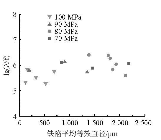 圖8 半固態(tài)壓鑄試樣裂紋源缺陷平均等效直徑和疲勞壽命