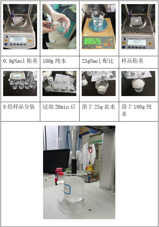 本次實驗將使用上海保圣質(zhì)構(gòu)儀及所配備的凝膠探頭,對四組不同的顆粒狀高分子材料吸水性樹脂進(jìn)行質(zhì)構(gòu)測試。對比四種樣品吸水飽和后凝膠強度差異,同時對比樣品分別吸收純水及0.9%Nacl溶液時凝膠強度差異。