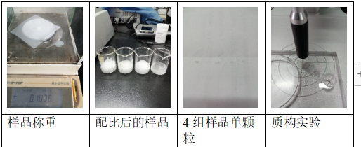 本次實驗將使用上海保圣質(zhì)構(gòu)儀及所配備的凝膠探頭,對四組不同規(guī)格顆粒狀高分子材料吸水性樹脂進(jìn)行單顆粒質(zhì)構(gòu)測試。對比四種樣品單獨顆粒吸收不同液體飽和后,顆粒的凝膠強(qiáng)度差異。
